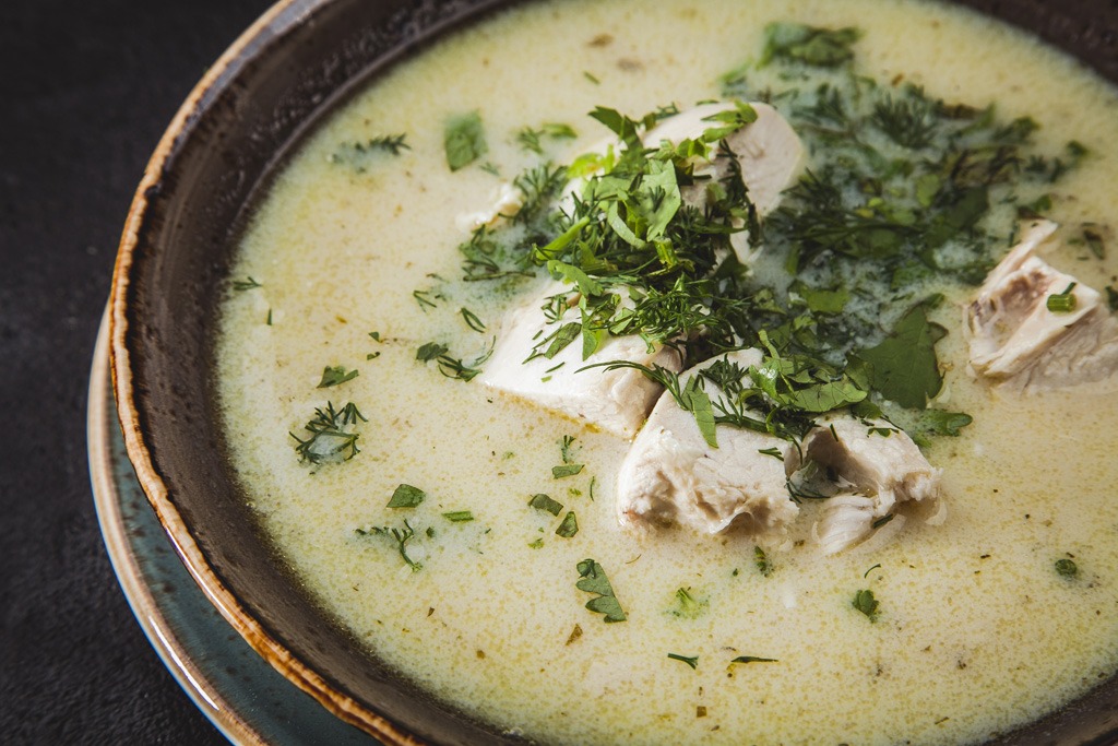 Традиционный грузинский суп с кусочками телятины, зеленью и фирменными кавказскими специями