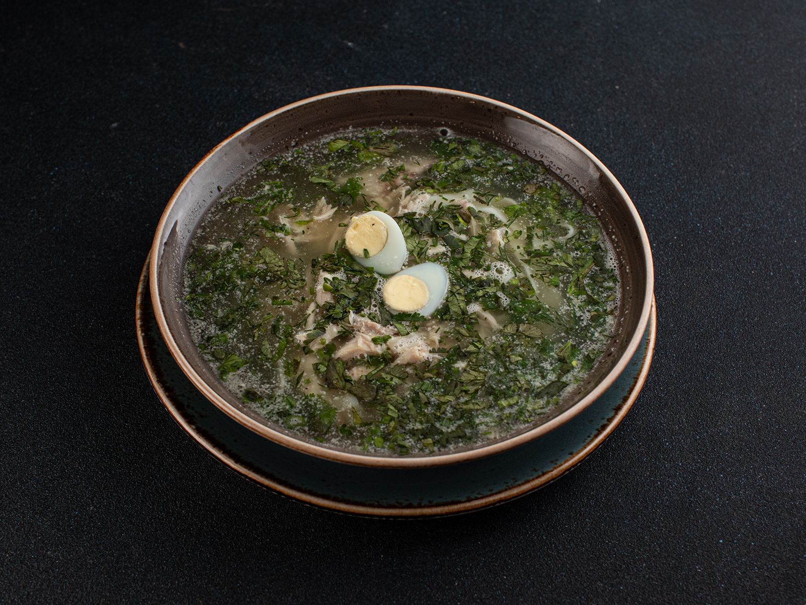 Традиционный грузинский суп с кусочками телятины, зеленью и фирменными кавказскими специями