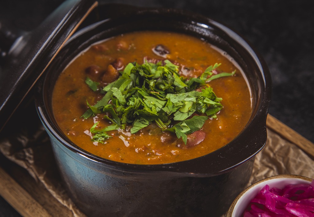 Красная фасоль, сельдерей и грузинские специи. Подаётся с капустой по-гурийски