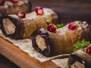 Рулет из баклажанов с грецким орехом и специями
